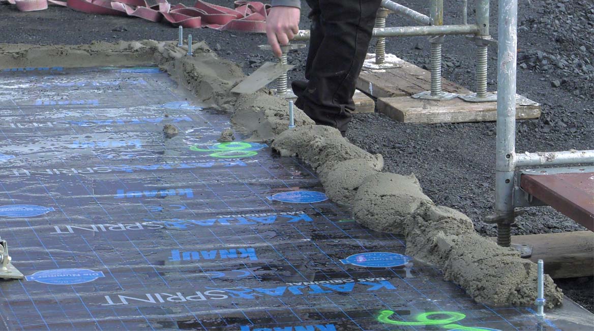 Die im Werk vorgefertigten Wandelemente werden auf der Baustelle mit der mehrfunktionalen STEXON® Schnell-Steckverbindung auf der Bodenplatte verankert. Die moderne, patentierte Technologie sorgt für eine sichere Verankerung und eine Montage mit einer Genauigkeit von +/- 1-2 Millimetern. Durch die Einfachheit und Schnelligkeit in der Anwendung werden 50% an Personalressourcen gespart, gleichzeitigt sinkt die Zahl an Arbeitsunfällen und die Arbeit wird körperschonender, leiser und angenehmer.